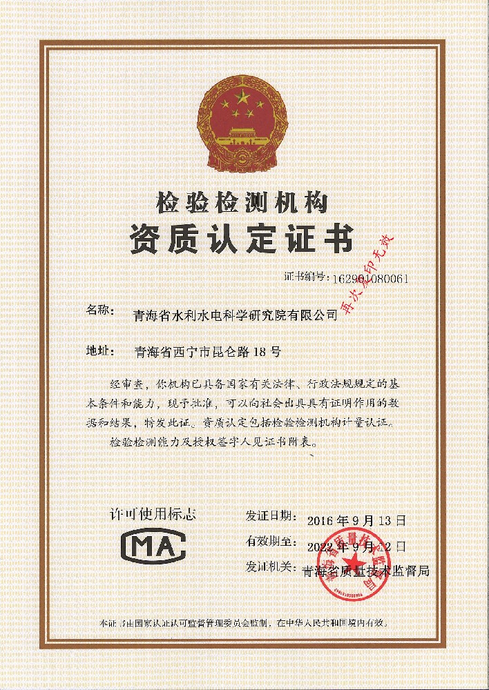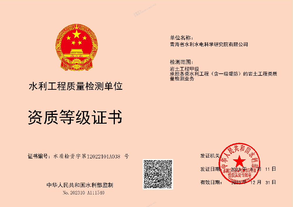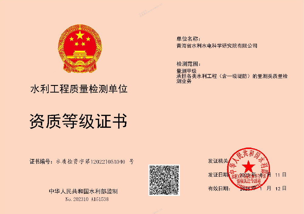 • 水利工程質量檢測單位資質等級證書(金屬結構類)