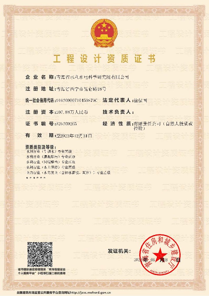 • 工程設計資質證書(水利行業)